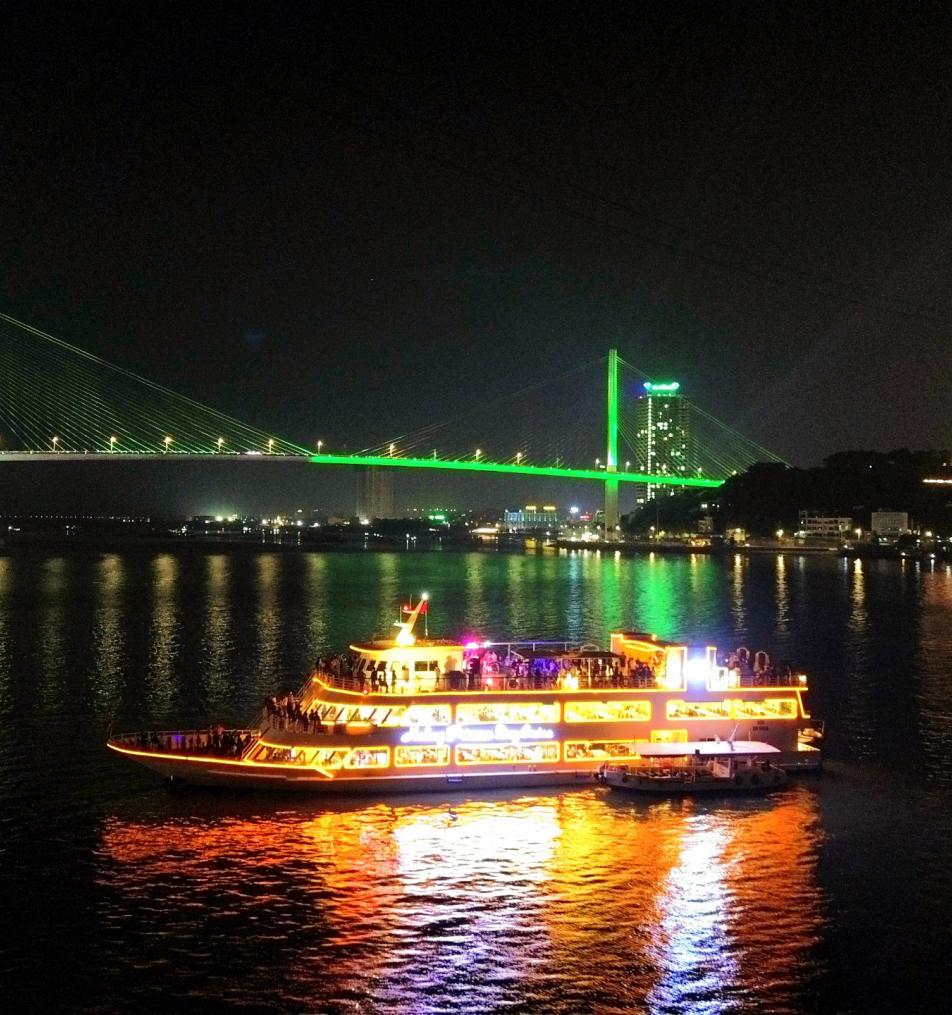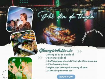 Du thuyền khởi hành chạy dọc bờ biển Vịnh Hạ Long từ Công Viên Hạ Long đến cầu Bãi Cháy. Trong chuyến hải trình, du khách sẽ được thưởng thức bữa tiệc Buffet tối trên du thuyền. Được tận hưởng những ca khúc do ban nhạc truyền thống của Việt Nam và quốc tế đến từ Philippin biểu diễn cùng với các vũ công chuyên nghiệp.